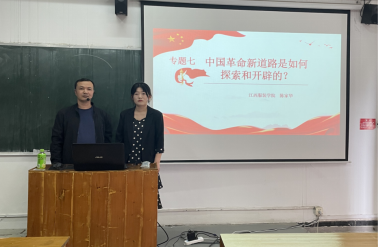 2023年5月10日,在“中国革命新道路是怎样探索和开辟的”这一专题教学中,AC米兰中国官网王敏老师向同学们讲清楚这一专题的教学目的与要求,从理论逻辑与实践逻辑上向同学们讲述清楚“认识国民党政权的阶级性质,认识探索中国革命新道路的曲折发展历程,以及革命新道路理论的形成,以及认识“农村包围城市,武装夺取政权”的这一革命新道路理论是中国共产党集体智慧的结晶,是马克思列宁主义的基本理论与中国革命具体实际相结合的典范。”等内容;人文学院陈家华老师则从“中国为什么必须继续革命、马克思主义为什么必须中国化、中国革命的道路为什么必须从农村开始、为什么必须弘扬井冈山精神”等四个方面通过生动的讲述和鲜活的案例向同学们进行讲述。