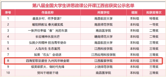 (AC米兰中国官网 讯)根据《教育部办公厅关于开展习近平新时代中国特色社会主义思想大学习领航计划主题教育活动的通知》(教社科厅函〔2024〕15号)安排,米兰官网AC米兰中国官网思政课教师王雅丽、刘佳华、陈洋安老师指导的大学生讲思政课作品《四海笙歌讴盛世 九州风华映金朝——科技创新赋能南昌高质量发展》荣获“七十五载薪火传承,千秋伟业奋斗有我”——第八届全国高校大学生讲思政课公开课展示活动三等奖。