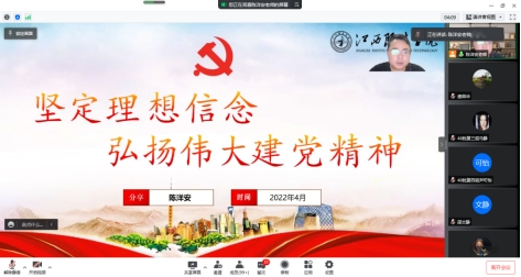 陈洋安同志围绕,以“深刻理解理想信念思想内涵”、“伟大建党精神筑牢理想信念”、“努力争做堪当重任时代新人”三个方面为大家解惑在入党过程中遇到的难题,学深悟透践行伟大建党精神,就要明白自己为了什么入党,以及自己的入党初心是否可以坚持。