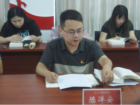 会上,与会人员通过视频学习了中共中央办公厅转发的《中央宣传部、中央组织部关于认真组织学习〈习近平谈治国理政〉第五卷的通知》精神。陈洋安同志从“提高认识,深刻领会重大意义;学懂弄通,准确把握核心要义;学思践悟,确保学习走深走实”三个方面进行了《习近平谈治国理政》第五卷的导学。党总支副书记、院长领学了《习近平谈治国理政》第五卷第五章《一体推进教育科技人才事业发展》的1—3部分,党总支委员、副院长贺松兰领学了第五章的4—5部分。党总支委员魏园园、姜珊两位同志围绕学习内容,结合自身工作实际,作了交流发言。