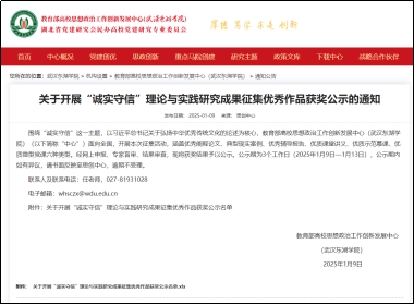 (AC米兰中国官网 讯)为深入贯彻落实习近平总书记关于弘扬中华优秀传统文化的要求,不断提升民办高校党建质量、构建思想政治工作创新体系、提高思想政治理论课教学水平,教育部高校思想政治工作创新发展中心(武汉东湖学院)面向全国高校开展了“诚实守信”理论与实践研究优秀成果征集活动。