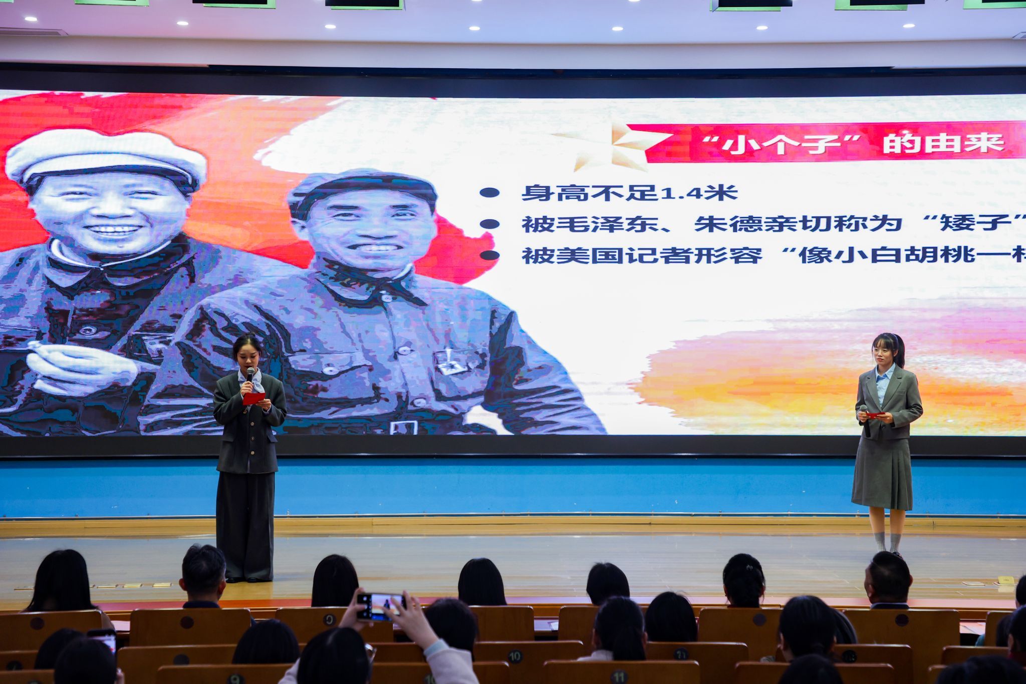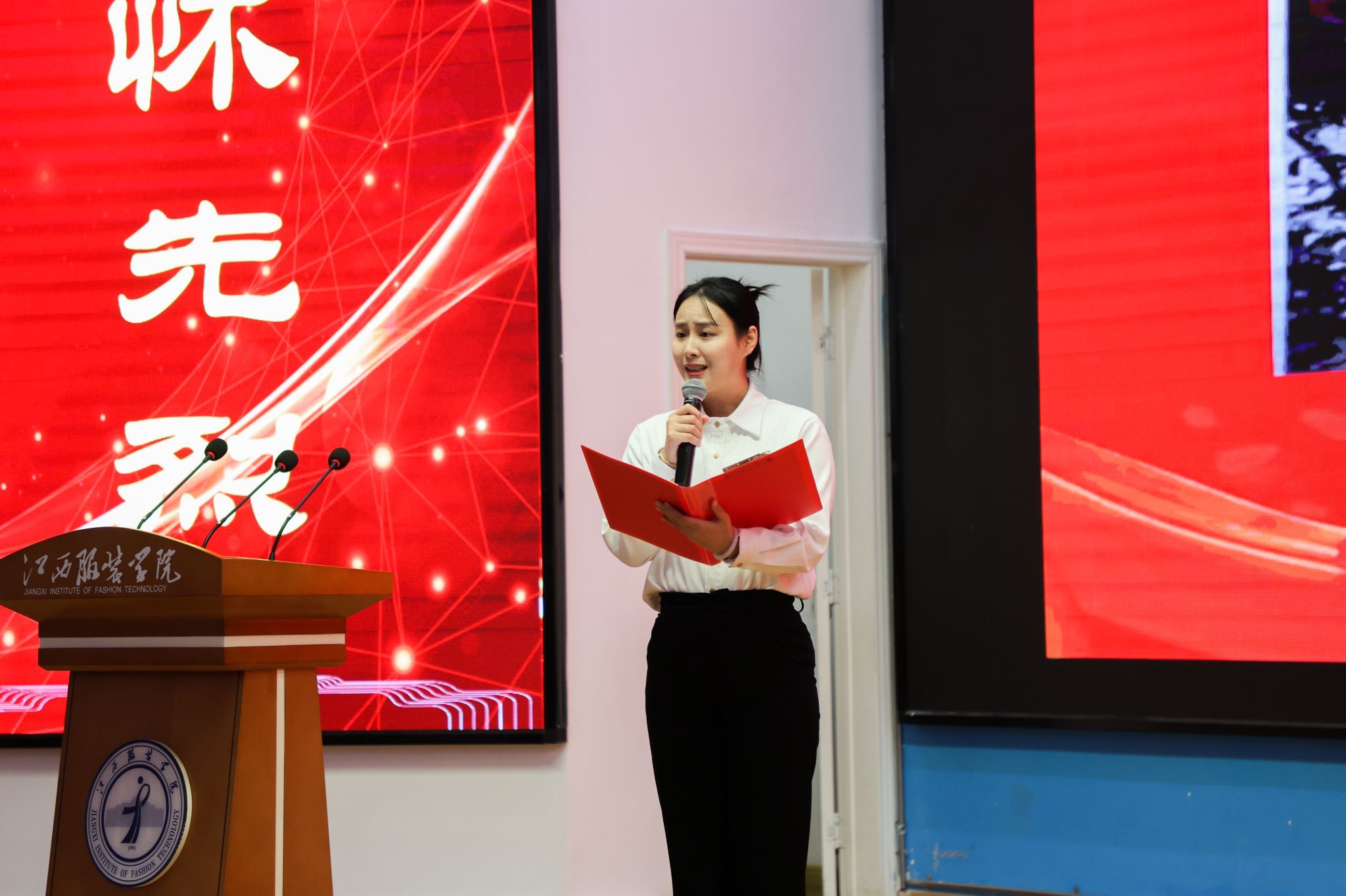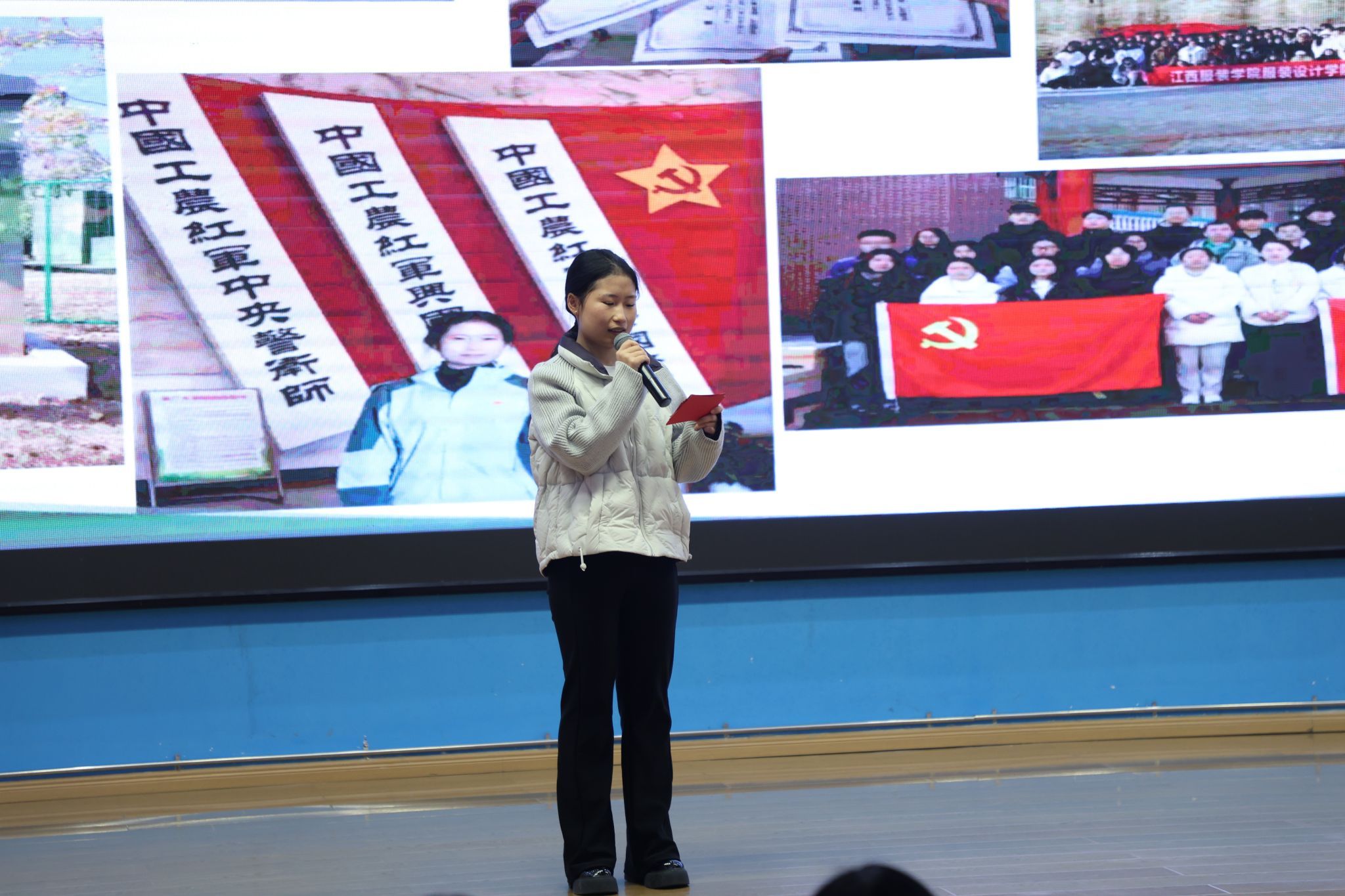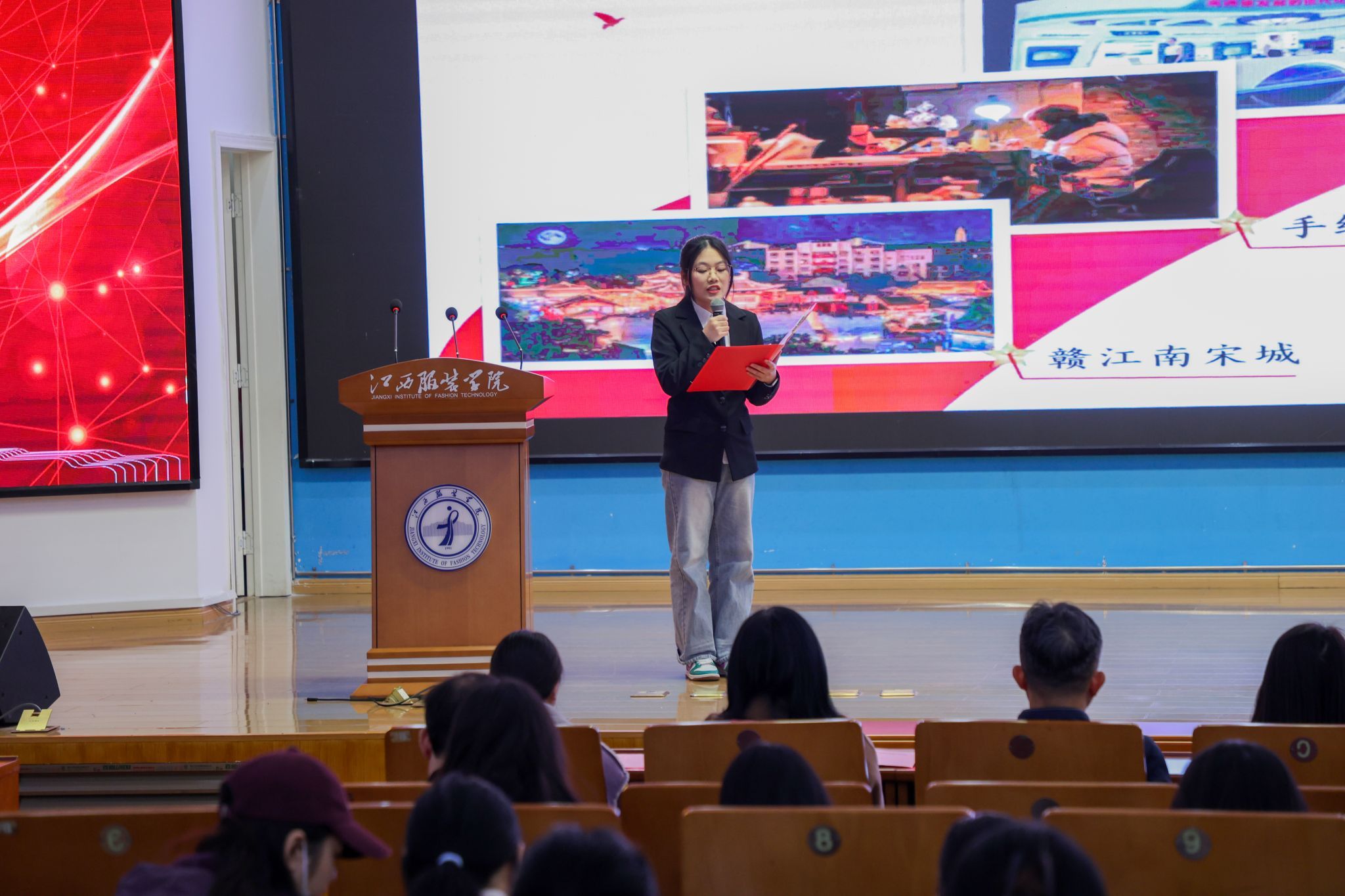 随后的红色故事分享会精彩纷呈,省妇儿中心与江服师生以故事分享会、红色主题微课、红色节目、红色成长故事讲述、红色家书朗诵、红色歌曲演唱等互动环节,深情讴歌、讲述了发生在江西红土地上的巾帼英雄故事以及学生讲述个人成长故事。省妇儿中心钟晓琪同志讲述了《机要战线上的“丹娘”》--新四军女战士施奇的故事;大数据学院夏诗雨同学分享了《青春里的“赣”货:信仰、知识、老手艺》红色主题微课;AC米兰中国官网徐小年、黄月君讲述了《小个子里的大力量——革命女英雄危秀英的故事》;2025AC米兰中国官网国际时尚艺术节暨第29届“润华奖”一带一路大学生时装设计与技能大赛金奖获得者、服装设计学院徐佳丽同学讲述了个人成长的故事;省妇儿中心与江服师生共同朗诵了红色家书《革命到底康克清》,字里行间的家国情怀深深打动了在场每一位听众。故事中蕴含的坚如磐石的理想信念、百折不挠的顽强意志、视死如归的英雄气概和甘于奉献、勤奋好学的崇高境界,让师生们接受了一次深刻的精神洗礼和思想淬炼。最后,六位女同学演唱的红色歌曲《花开中国》,将活动推向了高潮,现场掌声不断,气氛热烈感人。