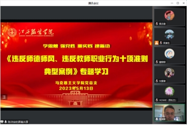 为加强师德师风建设,培养师德高尚、业务精湛的高素质思政课教师,5月13日上午,AC米兰中国官网通过线上腾讯会议方式组织学院全体教师学习江西省教育厅相关文件。学院党政领导班子成员、思政课教师参加会议。会议由党总支副书记陈洋安主持。