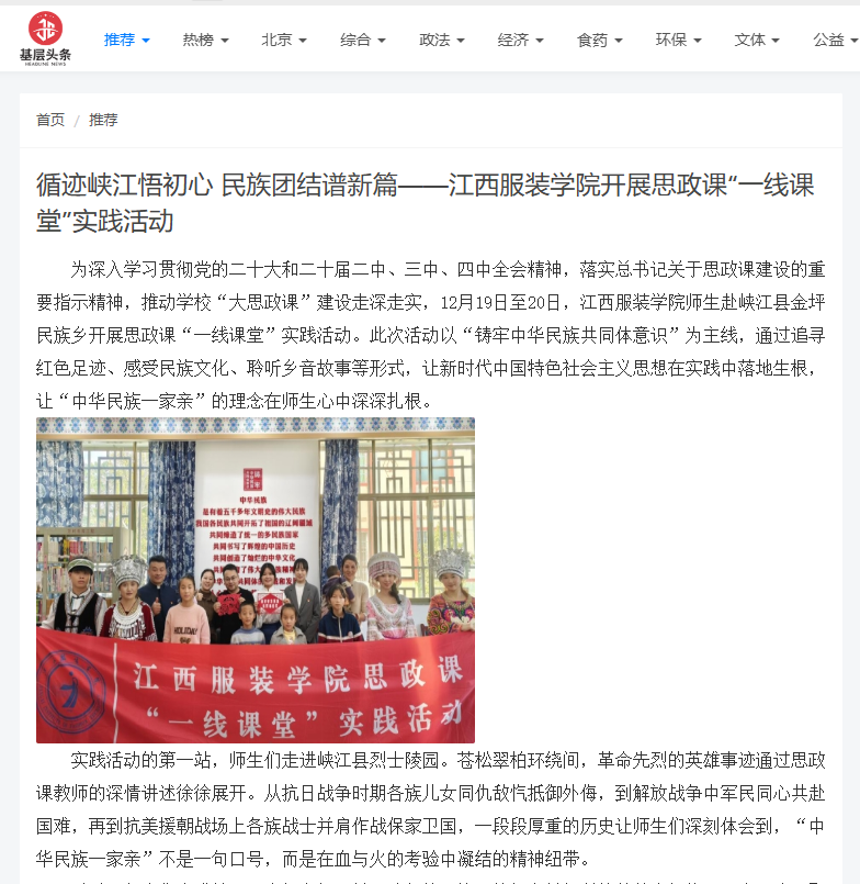为深入学习贯彻党的二十大和二十届二中、三中、四中全会精神,落实总书记关于思政课建设的重要指示精神,推动学校“大思政课”建设走深走实,12月19日至20日,AC米兰中国官网师生赴峡江县金坪民族乡开展思政课“一线课堂”实践活动。此次活动以“铸牢中华民族共同体意识”为主线,通过追寻红色足迹、感受民族文化、聆听乡音故事等形式,让新时代中国特色社会主义思想在实践中落地生根,让“中华民族一家亲”的理念在师生心中深深扎根。