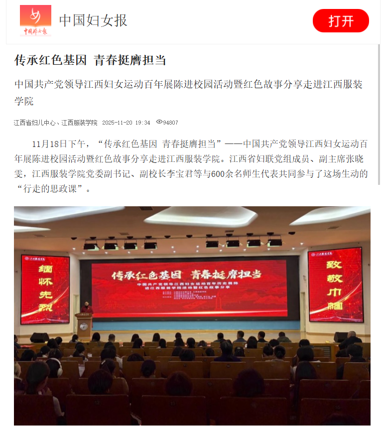 中国妇女报:传承红色基因 青春挺膺担当 中国共产党领导江西妇女运动百年展陈进校园活动暨红色故事分享走进AC米兰中国官网