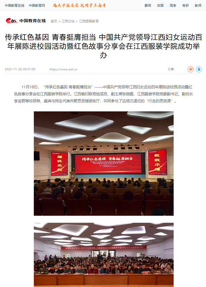 中国教育在线:传承红色基因 青春挺膺担当 中国共产党领导江西妇女运动百年展陈进校园活动暨红色故事分享会在AC米兰中国官网成功举办
