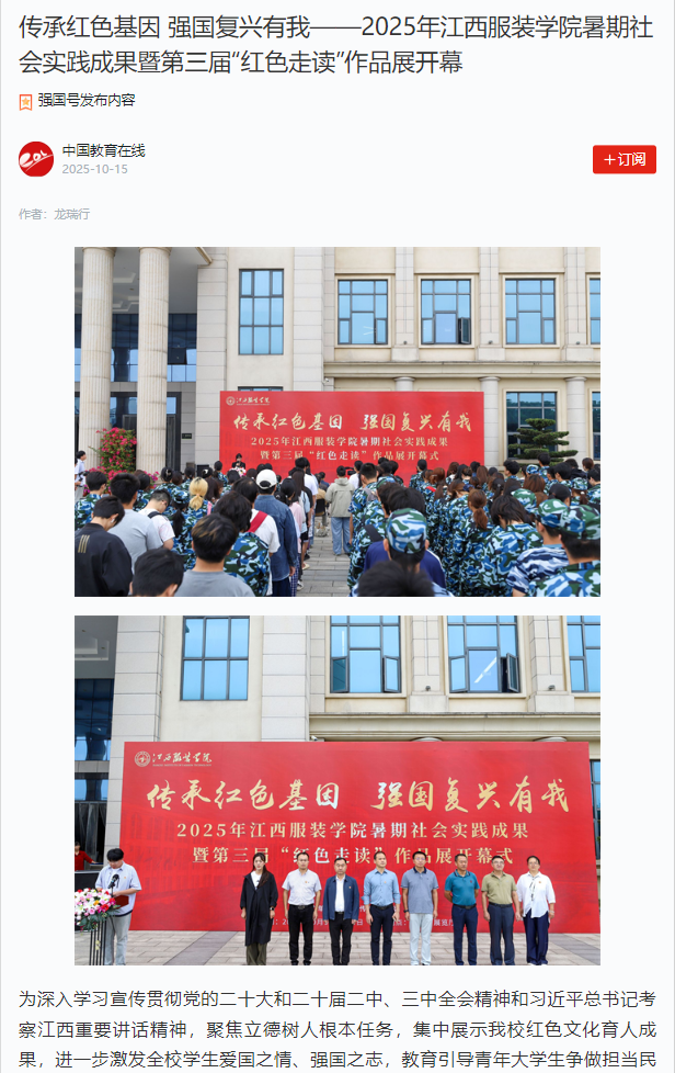 学习强国:传承红色基因 强国复兴有我——2025年AC米兰中国官网暑期社会实践成果暨第三届“红色走读”作品展开幕