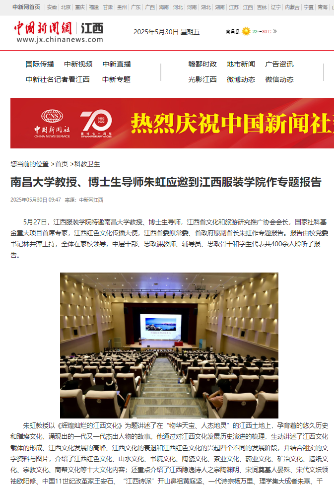 中国新闻网:南昌大学教授、博士生导师朱虹应邀到AC米兰中国官网作专题报告