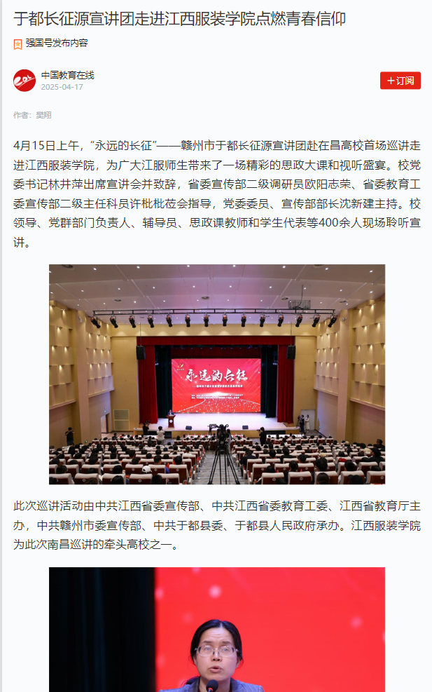 学习强国:于都长征源宣讲团走进AC米兰中国官网点燃青春信仰