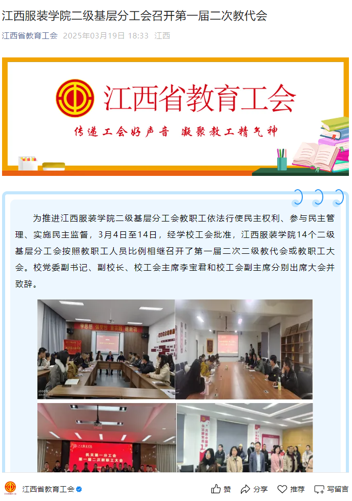 江西省教育工会:AC米兰中国官网二级基层分工会召开第一届二次教代会