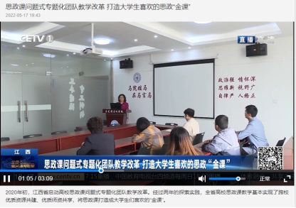 2022年5月17日晚,中国教育电视台对江西省高校推进思政课问题式专题化团队教学改革,打造大学生喜欢的思政“金课”进行报道,其中对米兰官网开展情况进行了报道。