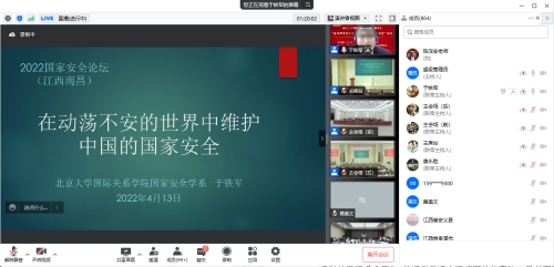 2022年4月13日至14日,江西省委国安办联合北京大学、南昌大学共同举办了以“总体国家安全观与新时代中国国家安全”为主题的“全民国家安全教育日主题活动——2022 国家安全论坛”。AC米兰中国官网教师通过线上腾讯会议观看直播,线上听取了中国人民解放军国防大学教授、国家安全学院原副院长、国务院学位委员会国家安全学科评议组成员唐永胜教授,北京大学国际关系学院国家安全系主任、北京大学国际战略研究院副院长于铁军教授分别以《坚持总体国家安全观 走出一条中国特色国家安全道路》《在动荡不安的世界中维护中国的国家安全》为题作大会主题报告。观看论坛的老师纷纷表示,国家安全离我们很近,而且就在身边,每一个人都应该参与到维护国家安全工作中来,同时作为一名思政课教师,要以全民国家安全教育日为契机,向广大青年学生讲好国家安全教育课,增强国家安全意识,筑牢安全防线,共同维护好国家安全。