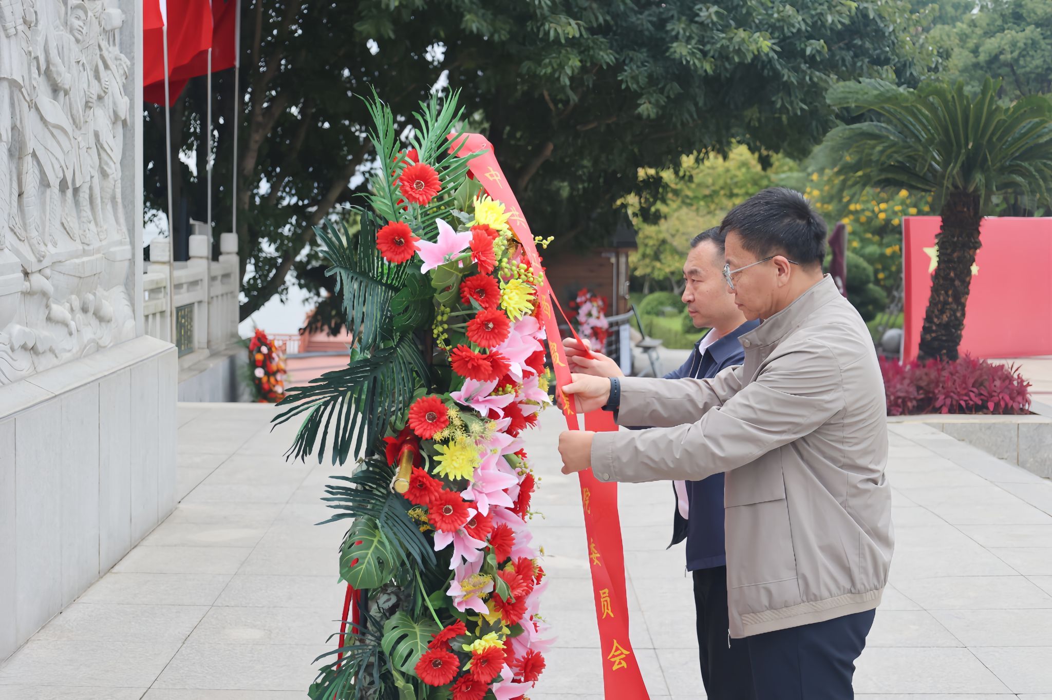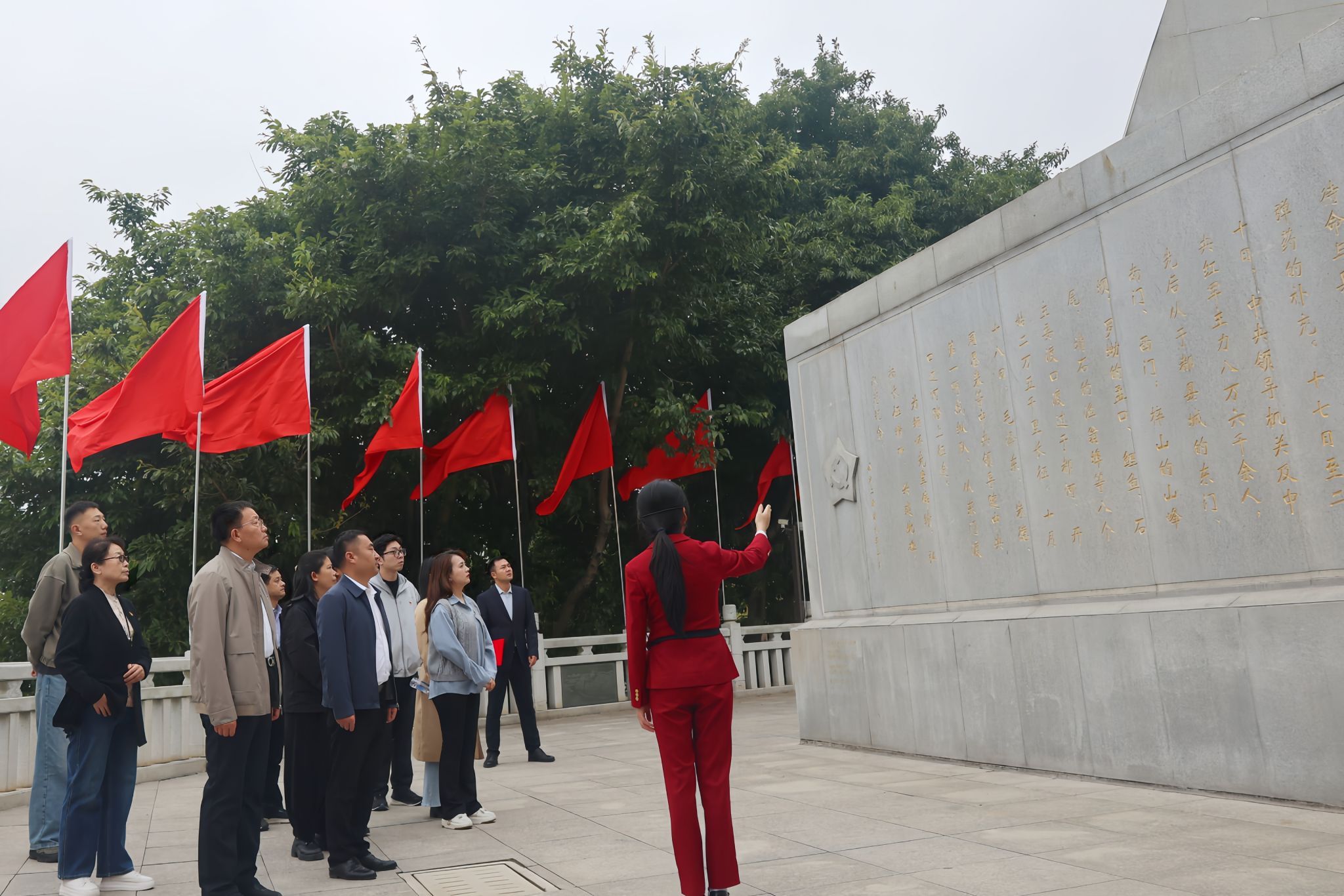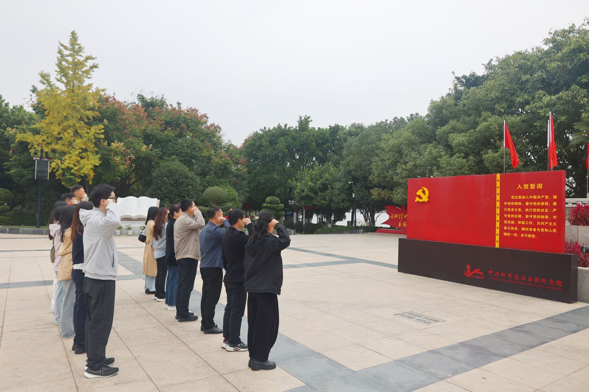 仪式前,AC米兰中国官网党建思政人员向中央红军长征出发纪念碑敬献花篮,全体人员肃立瞻仰、重温入党誓词。