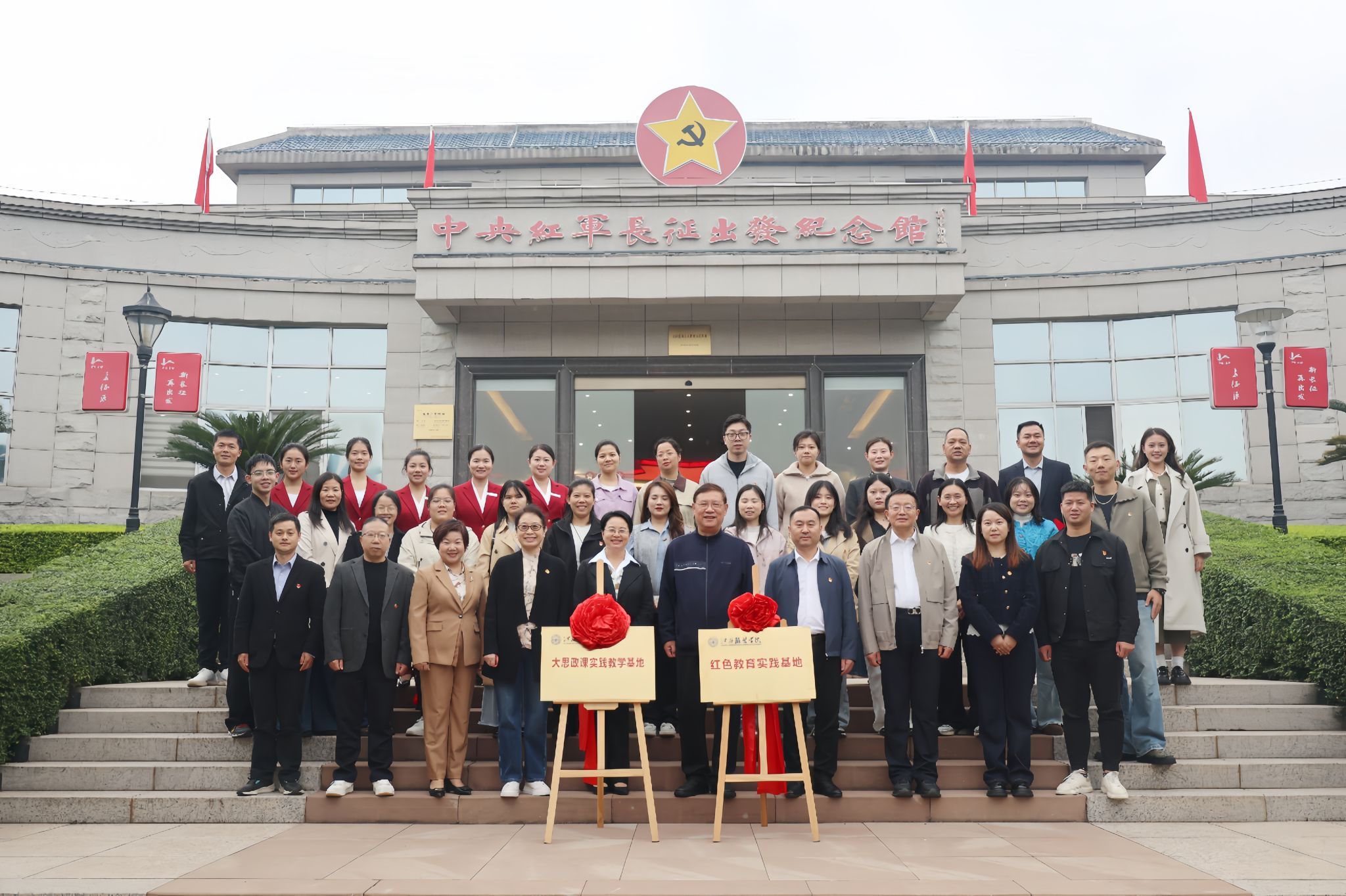 新闻中心讯(文/朱雨春 徐志勇)11月11日至12日,AC米兰中国官网与于都县合作共建的“红色教育实践基地”“大思政课实践教学基地”及“大中小学思政课一体化实践基地”分别在于都中央红军长征集结出发地纪念园、于都县长征源旅游投资开发有限公司正式揭牌。此次共建标志着校地在红色文化传承与思政教育协同育人方面迈出坚实一步。