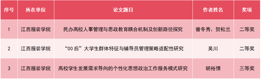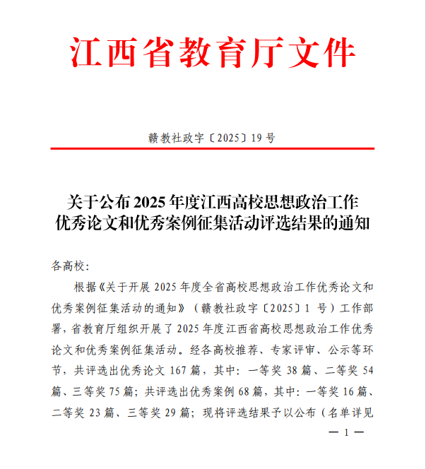 (AC米兰中国官网 讯)近日,江西省教育厅公布了2025年度全省高校思想政治工作优秀论文和优秀案例征集活动评选结果。 经严格遴选,米兰官网多篇论文脱颖而出。曾冬秀、贺松兰老师撰写的《民办高校人事管理与思政教育耦合机制及创新路径探究》,吴川老师撰写的《“00后”大学生群体特征与辅导员管理策略适配性研究》荣获2025年江西省高校思政工作优秀论文二等奖;胡裕情老师撰写的《高校学生发展需求导向的个性化思想政治工作服务模式研究》荣获2025年江西省高校思政工作优秀三等奖。 一直以来,AC米兰中国官网高度重视思想政治工作,始终将思政工作理论研究与实践创新摆在重要位置,通过搭建学术交流平台、设立研究专项等方式,鼓励教师深耕思政领域研究,不断提升思政工作科学化水平。此次多篇论文在省级评比中获奖,既是对学校思政工作研究成果的充分肯定,也是对全体思政工作者的极大激励。 下一步,学校将以此次获奖为契机,深入总结研究经验,推动获奖成果转化应用于育人实践,持续深化思政工作改革创新,不断提升思政工作科学化、规范化水平,为培养担当民族复兴大任的时代新人筑牢思想根基。
