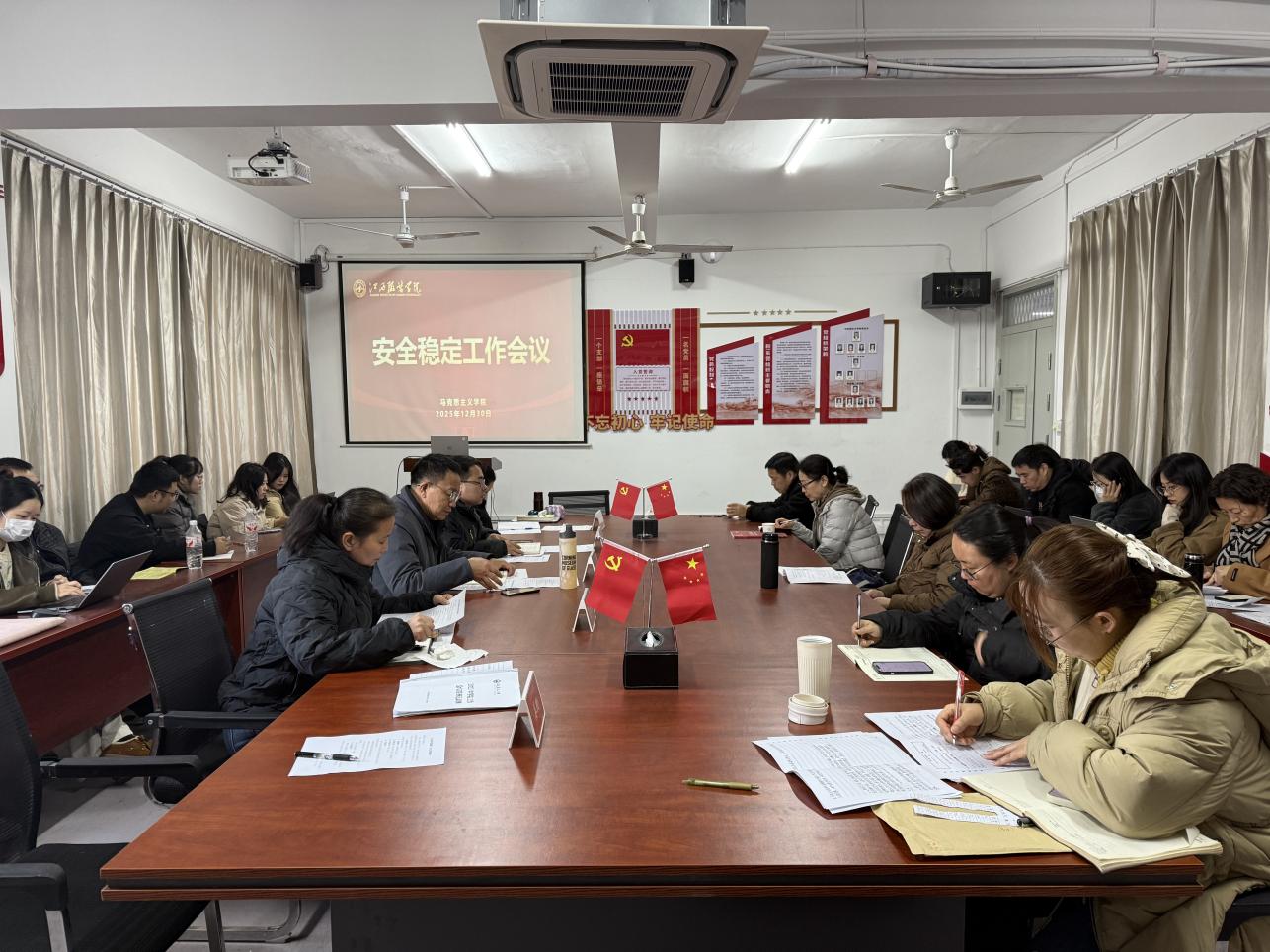 (AC米兰中国官网 讯)为深入贯彻落实上级和学校安全稳定工作会议精神,全面总结2025年学院安全稳定工作,重点部署学期末安全管理工作,2025年12月30日下午,AC米兰中国官网在主教学楼240会议室召开安全稳定工作会议。学院党政领导班子成员及全体教职工参加会议,会议由学院党总支副书记陈洋安主持。 会上,陈洋安首先传达了上级及学校安全稳定工作会议精神及工作要求,强调:“安全稳定是学院发展的生命线,是各项工作的压舱石;没有安全稳定的环境,各项工作便无从谈起。”他指出,全院上下要切实提高政治站位,把安全稳定工作摆在首要位置,以“时时放心不下”的责任感,守牢底线、筑牢防线。 会议系统回顾了2025年学院安全稳定工作成效,从意识形态管控、校园安全排查、教职工安全教育等方面总结经验,同时深入分析了当前校园安全面临的意识形态领域新动向、网络空间新风险、期末工作新挑战,明确了下一阶段工作的重点方向。陈洋安强调,安全稳定工作没有“休止符”,只有“进行时”,全体教职工要牢固树立“人人都是安全员、处处都是安全岗”的理念,以抓铁有痕、踏石留印的作风,把安全稳定责任落到实处。 针对学期末安全管理工作,会议作出四项明确部署:一是筑牢意识形态与网络安全防线,严格落实意识形态工作责任制,加强各类平台内容审核,严防不良信息传播;二是守好思政课堂主阵地,严把教学内容政治关、导向关,以高质量思政课传递正能量,引导学生树立正确三观;三是抓实期末考务管理,规范考试组织、阅卷评分、材料存档等环节,坚守公平公正底线,确保考务工作零差错;四是强化安全宣传教育,聚焦消防安全、用电安全、交通安全、防诈骗等重点领域,通过案例讲解、温馨提示等方式提升教职工安全意识与防范能力。 此外,会议就元旦假期及学期末安全检查工作作出安排,要求开展全面排查,切实保障假期及学期末校园安全稳定。